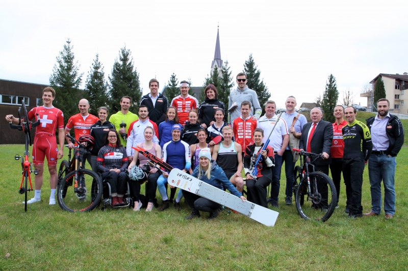 Für das Gruppenfoto posierten wir in unserer Sportausrüstung.