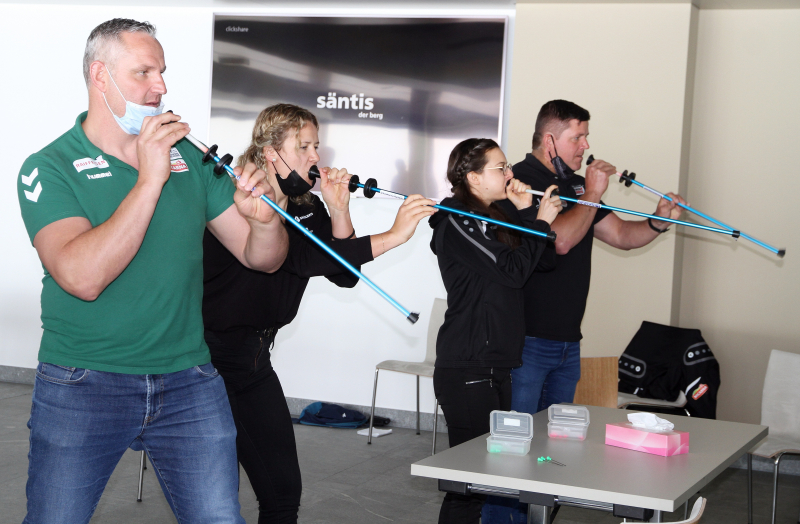 Auf dem 2502 m. ü. M. gelegenen Säntis-Gipfel trafen sich 15 Sportlerinnen und Sportler des Micarna-Teams. Die drei Rad-Profis Stefan Küng, Stefan Bissegger und Jonas Rutsch absolvieren vor der Tour de Suisse ein dreiwöchiges Höhentrainingslager und verbringen dabei die Ruhephasen auf dem Säntis. Sie stellten die Infrastruktur vor und schilderten ihren Trainingsalltag. Als Ehrengast war der ehemalige Schweizer Radrennfahrer Beat Breu eingeladen. Sportliche Aktivitäten durfte natürlich nicht fehlen. In zwei Gruppen aufgeteilt absolvierten wir eine Mini-Plausch-Stafette. Dabei war ich im Blasrohrschiessen und auf dem Einrad engagiert. Trotz nebliger und kühler Witterung war der Anlass amüsant, spannend und lehrreich. Ich schätzte es sehr mich wieder mal mit Athleten und Athletinnen von anderen Sportarten auszutauschen.